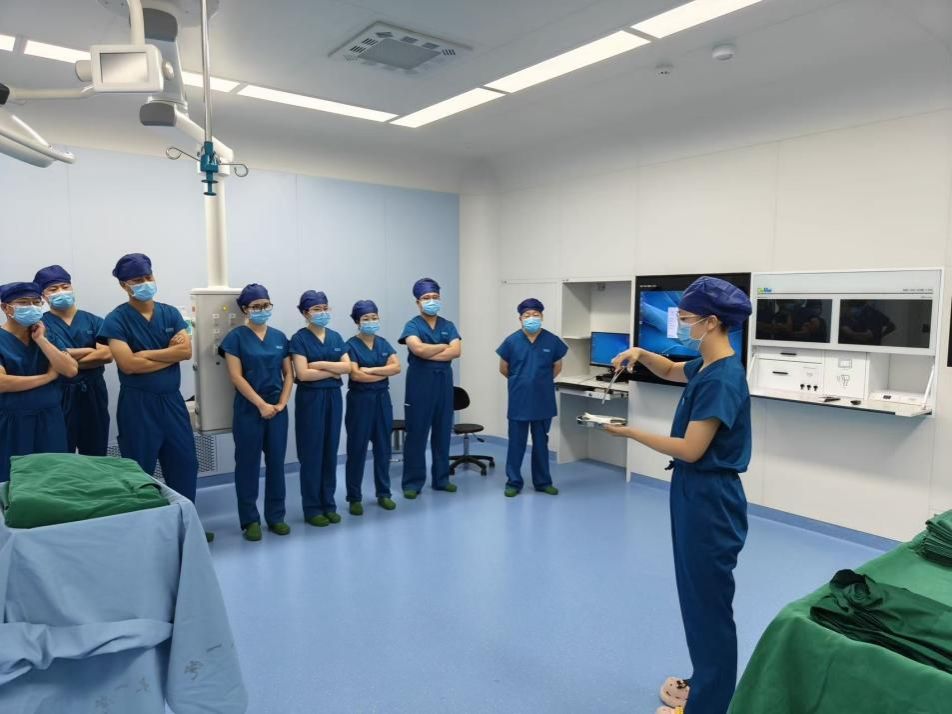 培训期间,在理论讲解环节,讲师围绕《外科手消毒注意事项》、《手术铺单原则》等关键内容进行讲解;实操演练环节则以模拟手术室为场景,针对无菌操作等重点技能,逐一示范标准操作流程,医生们分组进行实操练习,与手术室护士交流沟通,确保开诊后达到紧密配合。