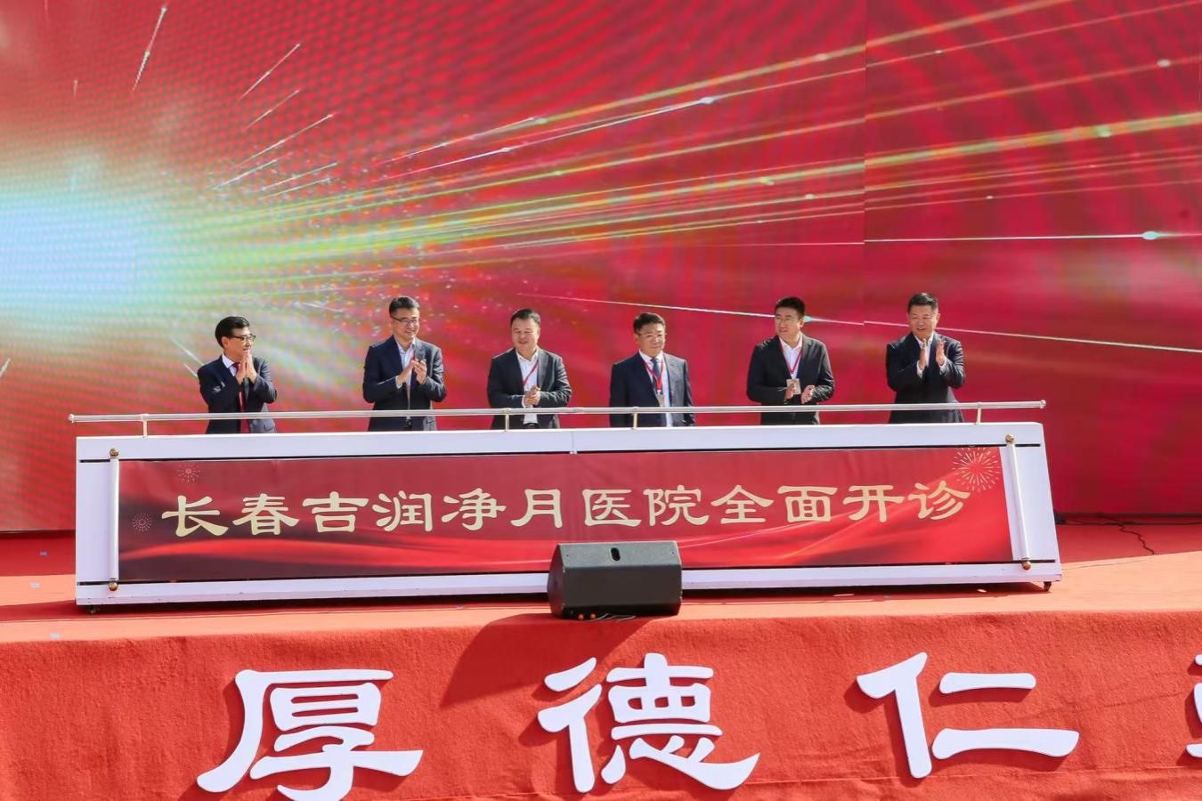 在现场全体嘉宾的倒计时声中,由周洪亮书记、丁慧东副书记、刘彬院长、傅强董事长、杜峥平董事长、华树成院长共同为长春吉润净月医院开诊助力启动。医院的开诊标志着这座现代化医院正式扬帆起航,开启了守护春城百姓健康的新征程。